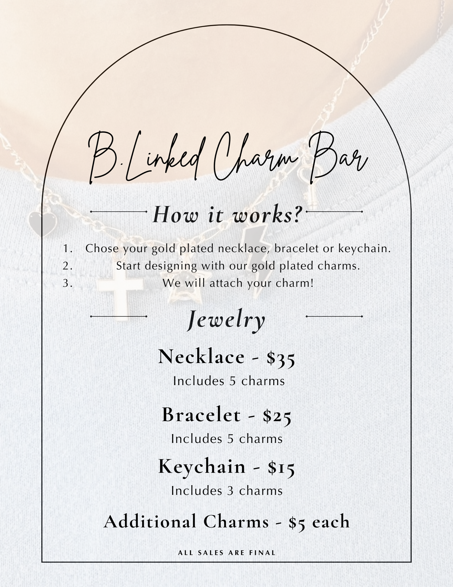 Choose from a gold plated bracelet or necklace and customize it with a variety of over 100+ charms.
